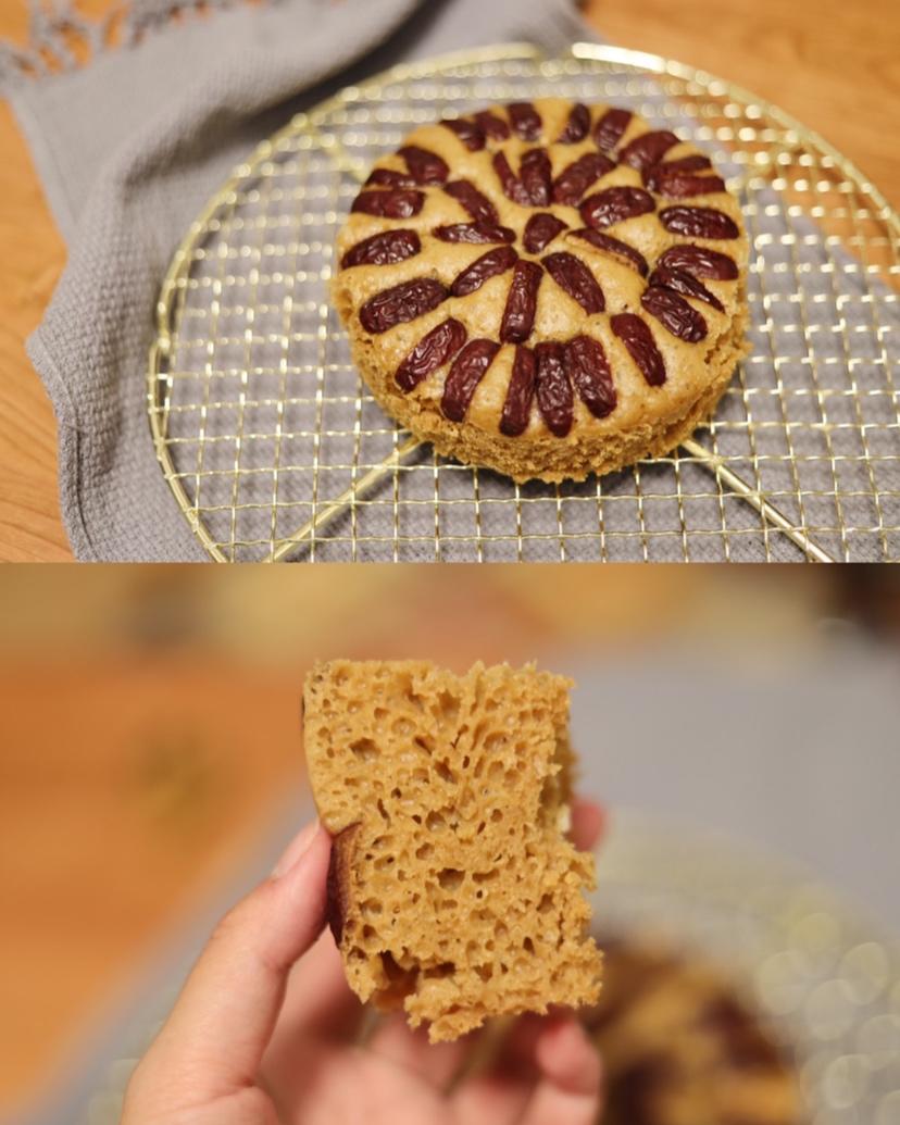 在一半的量基础上糖和油减了些,做了如图四个小蛋糕,感觉油还是稍稍多一点,取出来的时候可以看到...