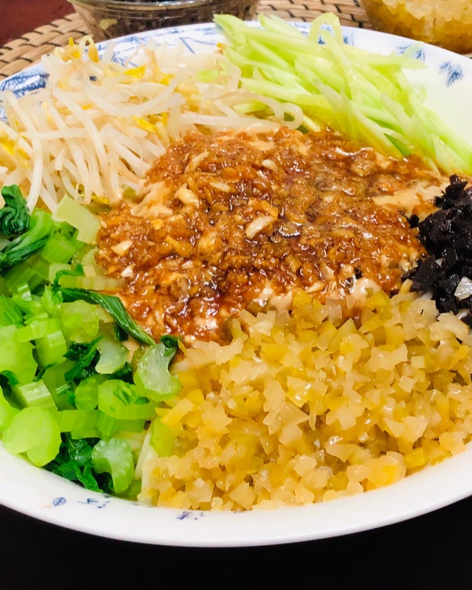 今日夏至。我从小吃到大的麻酱凉面。蒜泥和面码都有讲究