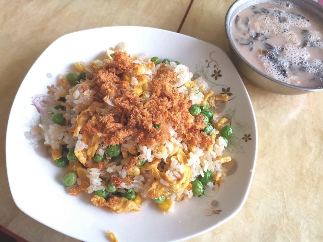 今日早餐:时蔬蛋炒饭+咸豆浆。