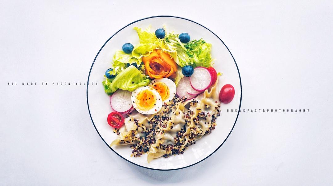必品阁蒸饺+蔬果沙拉+全豆豆浆