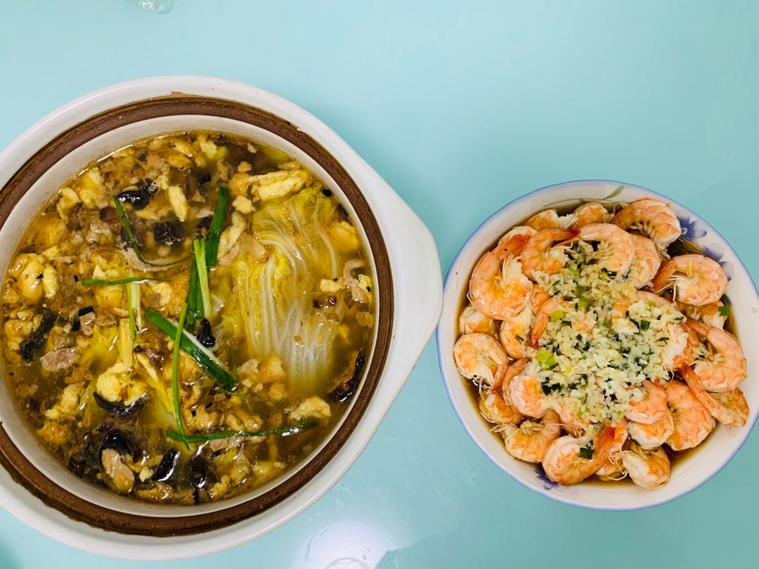 估计粉丝量失误,泡水后出来一大把,不过大家表示菜真的很好吃,做起来最麻烦的可能就是处理虾了。