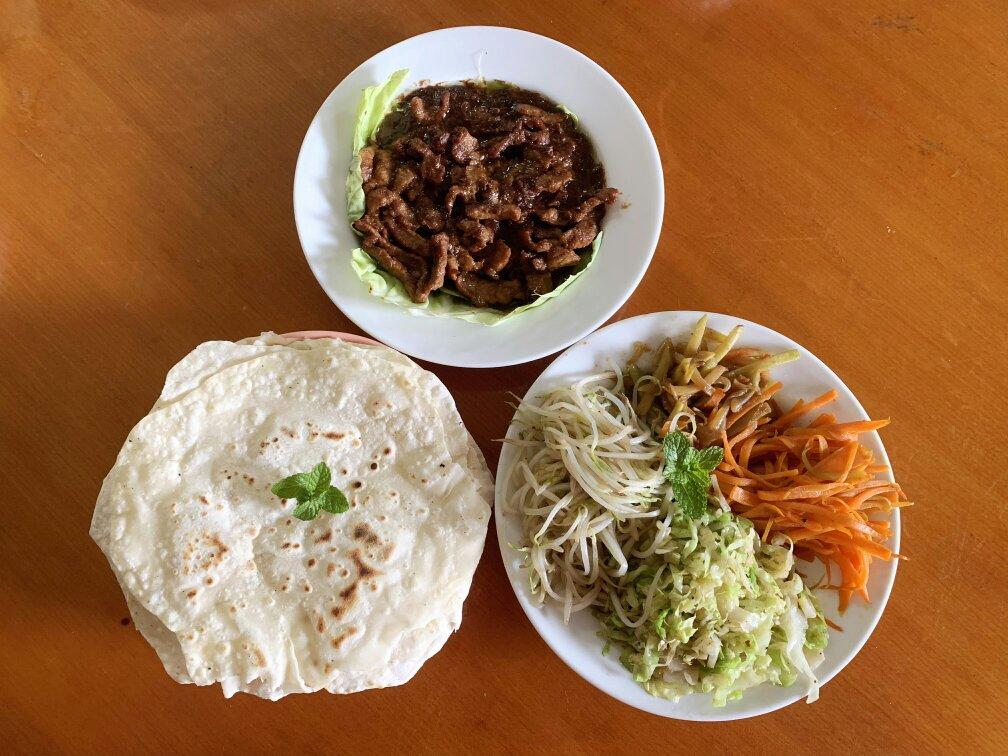 今天请朋友来家里吃饭,做了门钉肉饼、京酱肉丝卷和绿豆红豆薏米银耳汤,吃完消化一下...