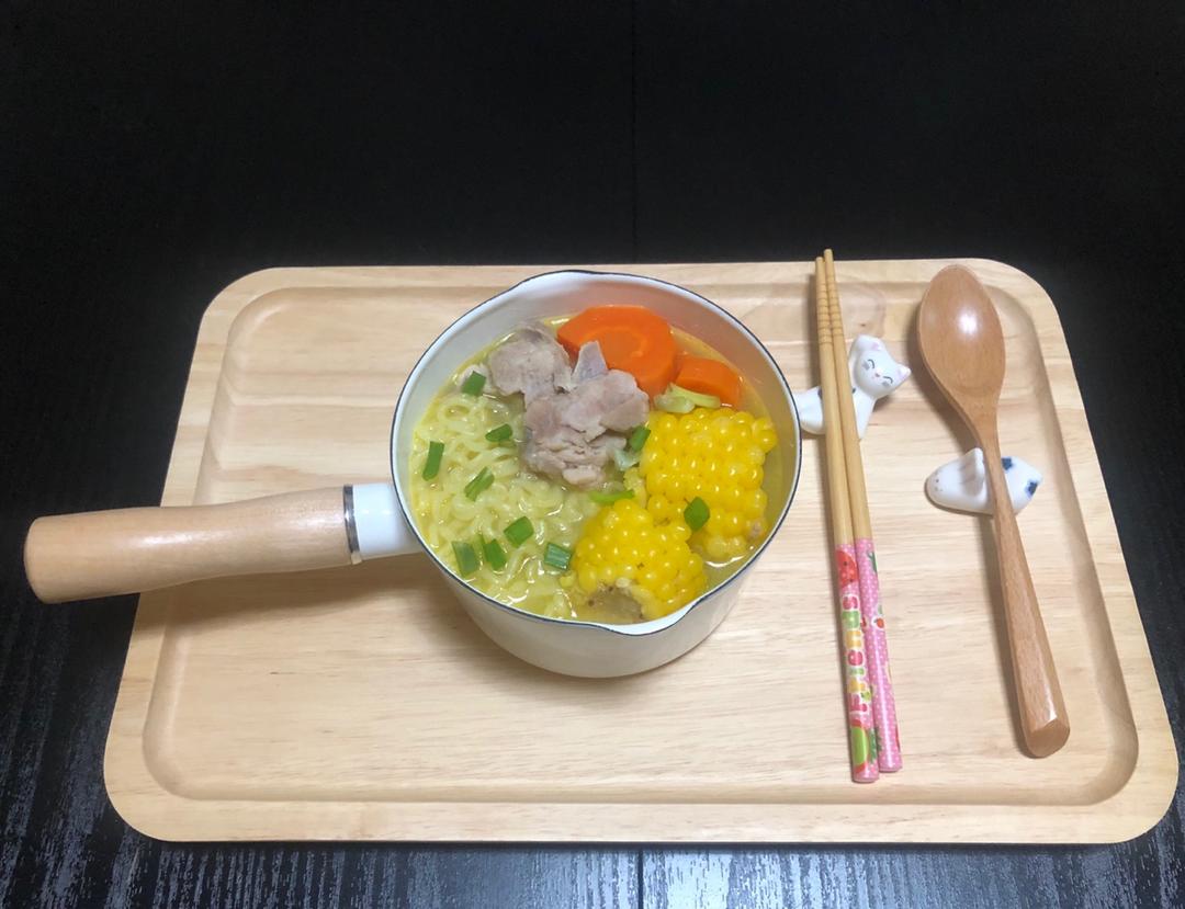 玉米排骨面,熬了好久的排骨汤做底,真的好绝,我可以再来一碗!