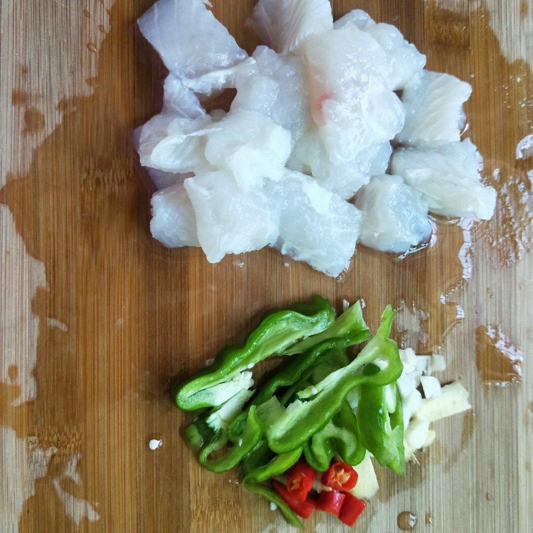 减肥午餐打卡,青椒炒巴沙鱼 加了点配件 鸡肉丸和火腿