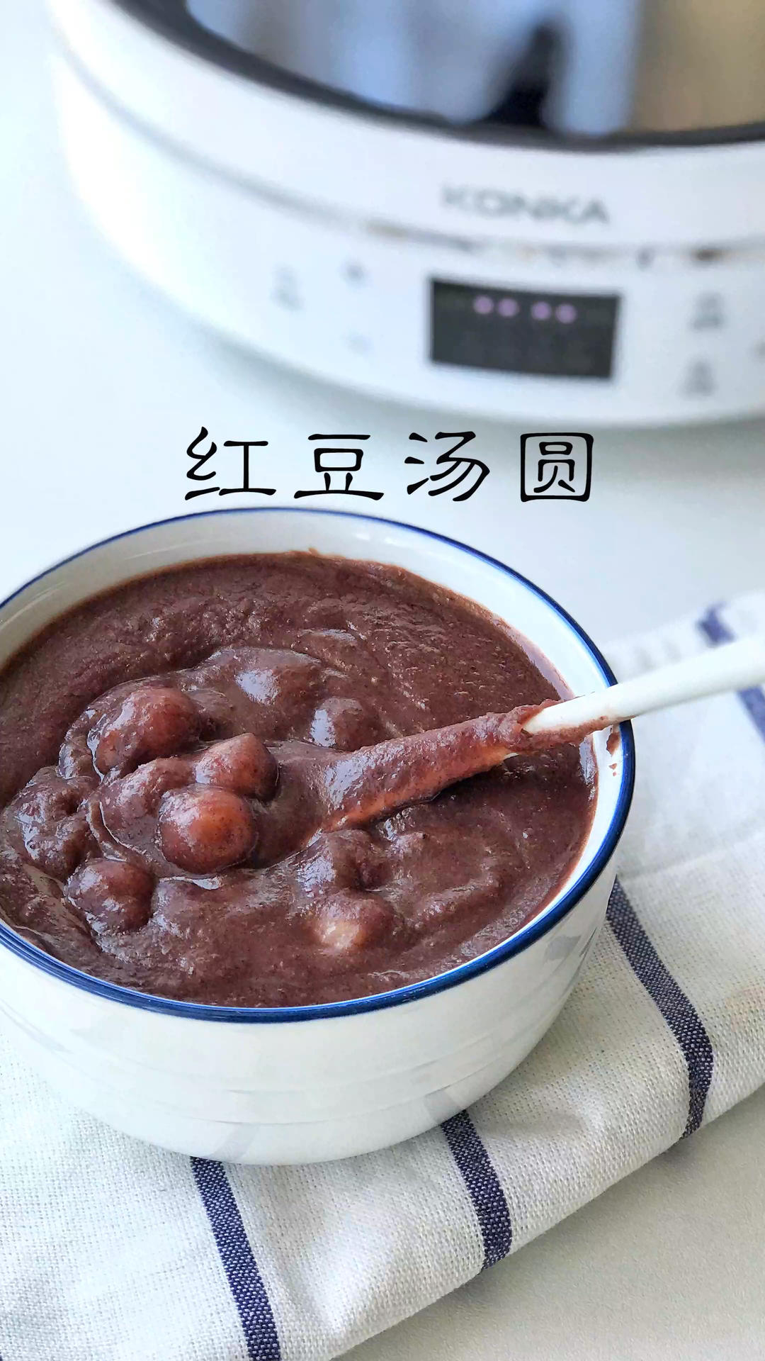 红豆煮开花后捞出来,打成红豆泥,再倒回煮红豆的汤中,加上冰糖和小汤圆,只要汤圆飘上来就OK啦,超级好吃😋晾凉喝口感更好😁...