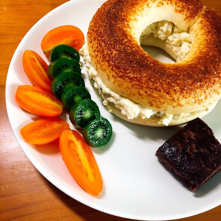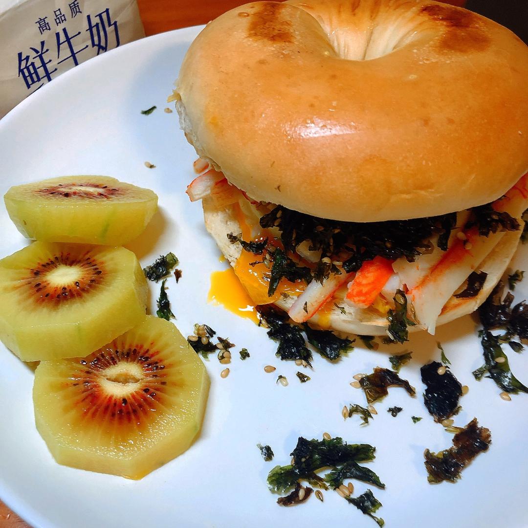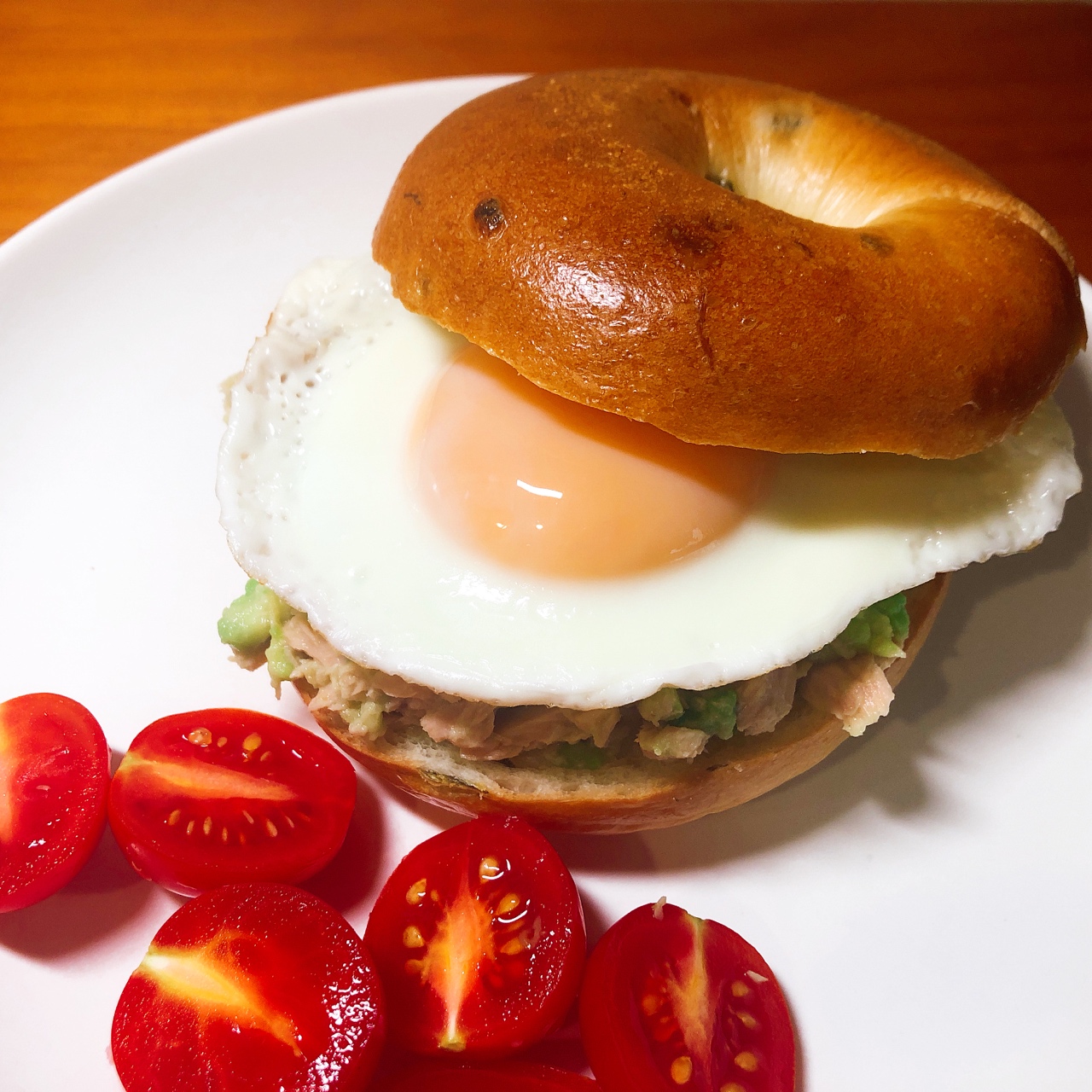 辣椒貝果配牛油果金槍魚