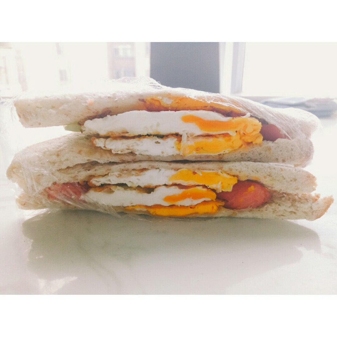 面包+煎蛋+香肠+青菜=三明治✌