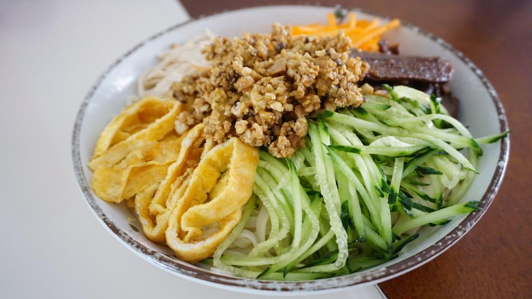 五彩鸡丝凉面,一个人的晚餐。