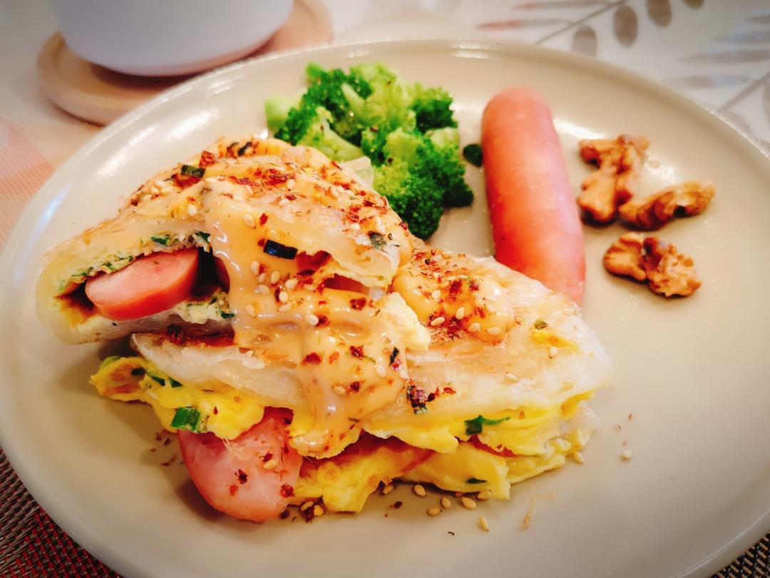 手抓饼霸王+西蓝花+核桃仁+红豆粥