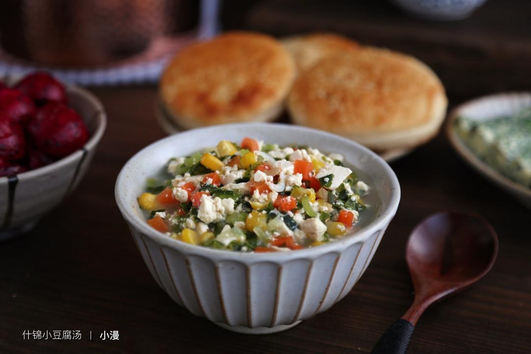 第429天早餐:千层饼酥饼+什锦小豆腐汤+菠菜蒸蛋羹+红心火龙果