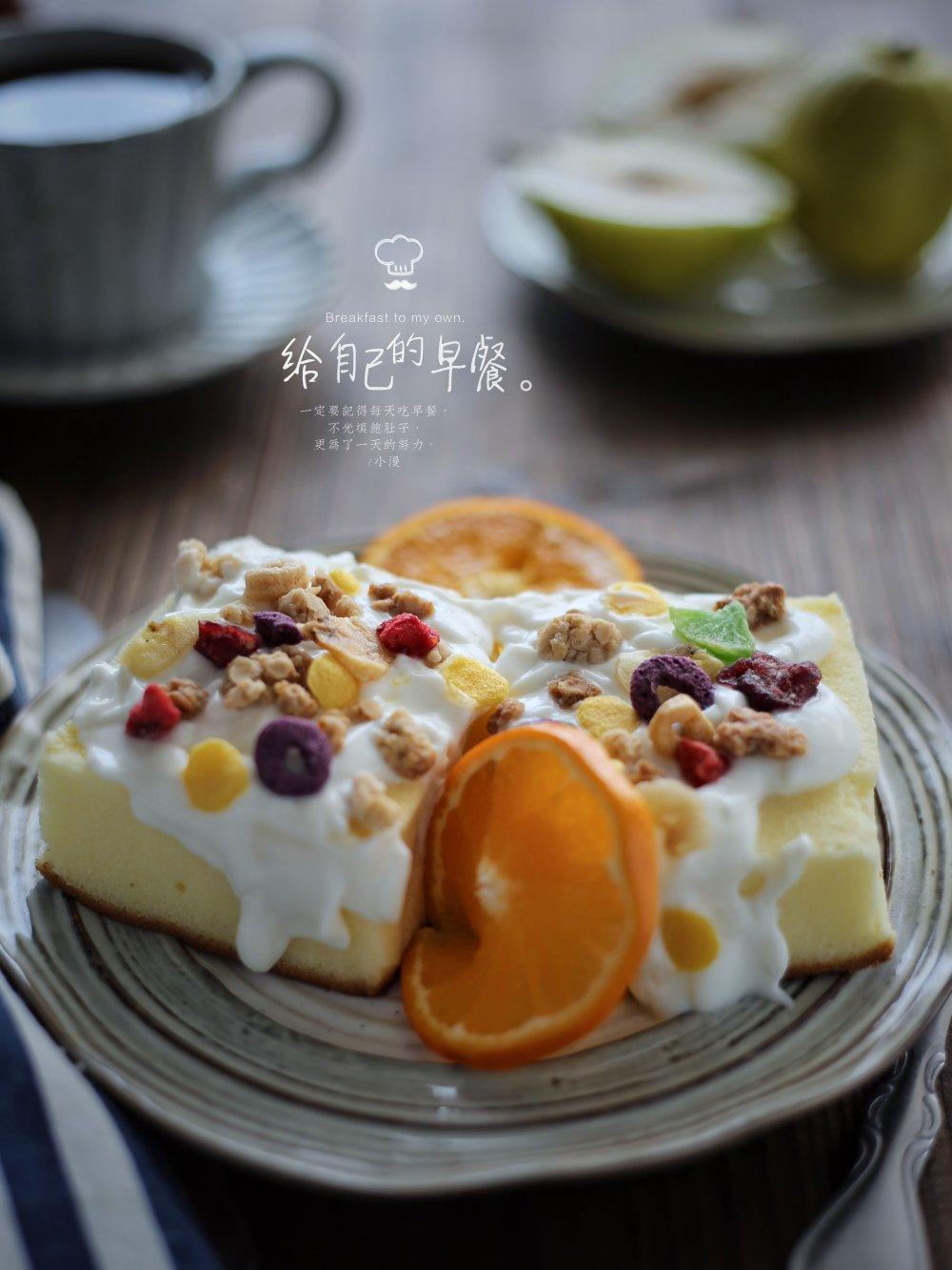 第440天早餐:云朵蛋糕+麦片酸奶+库尔勒香梨