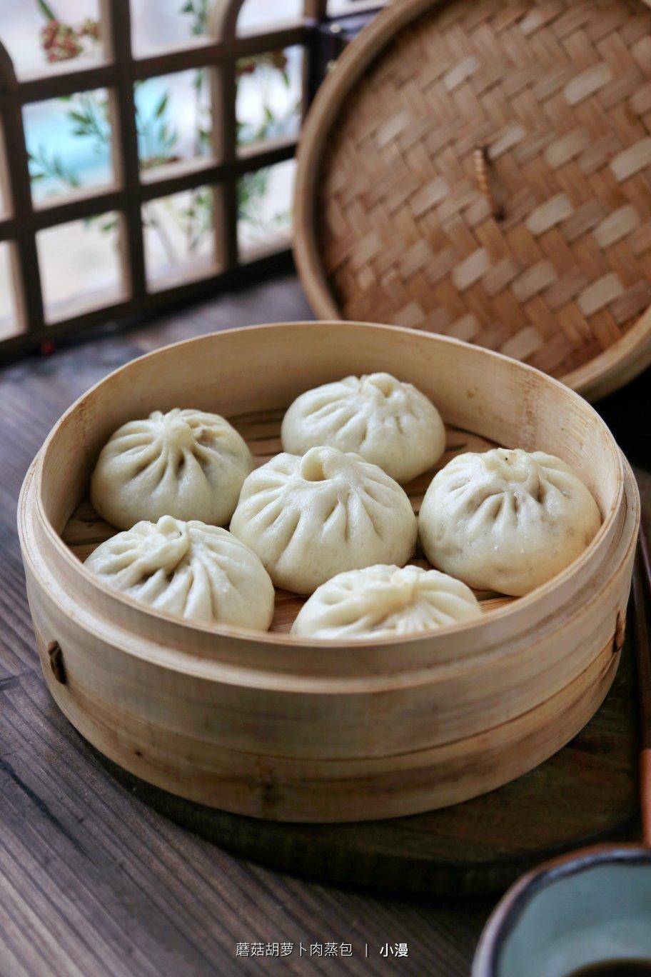 第425天早餐:蘑菇胡萝卜肉蒸包+蘑菇小白菜鸡蛋汤+丑橘