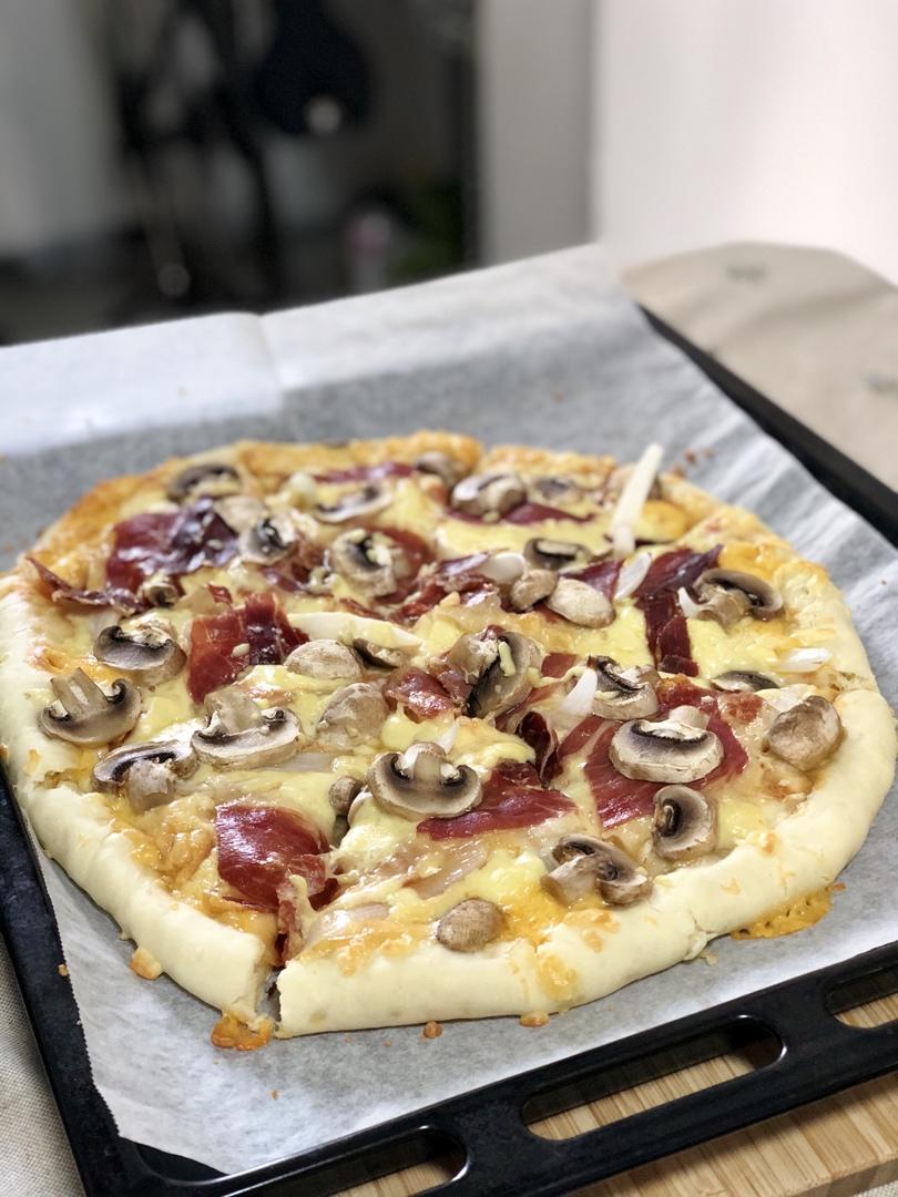 和闺女一人做一个pizza~锅煮鸳鸯拿铁加了炼乳,她还是觉得苦!