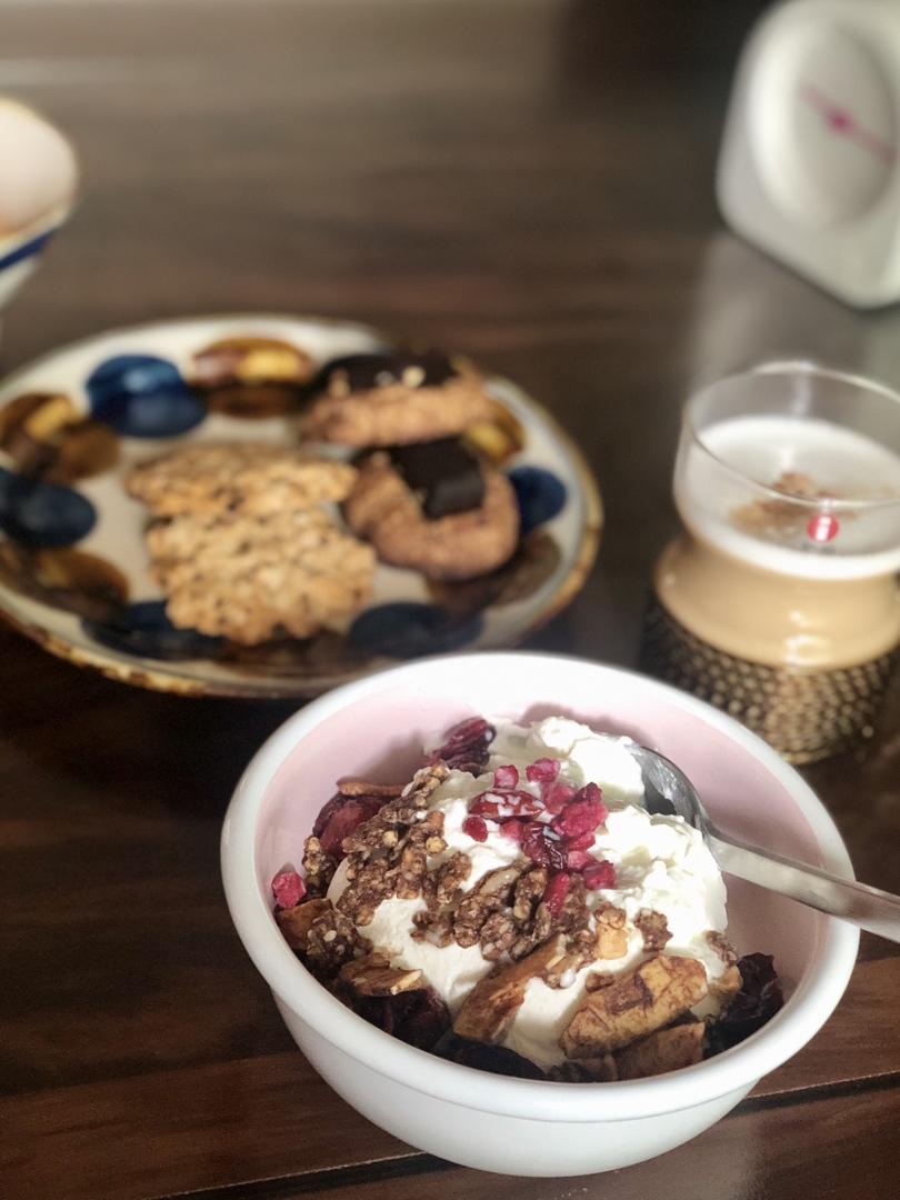 早餐:Cycle冰面包、巧克力豆乳隔夜麦片…