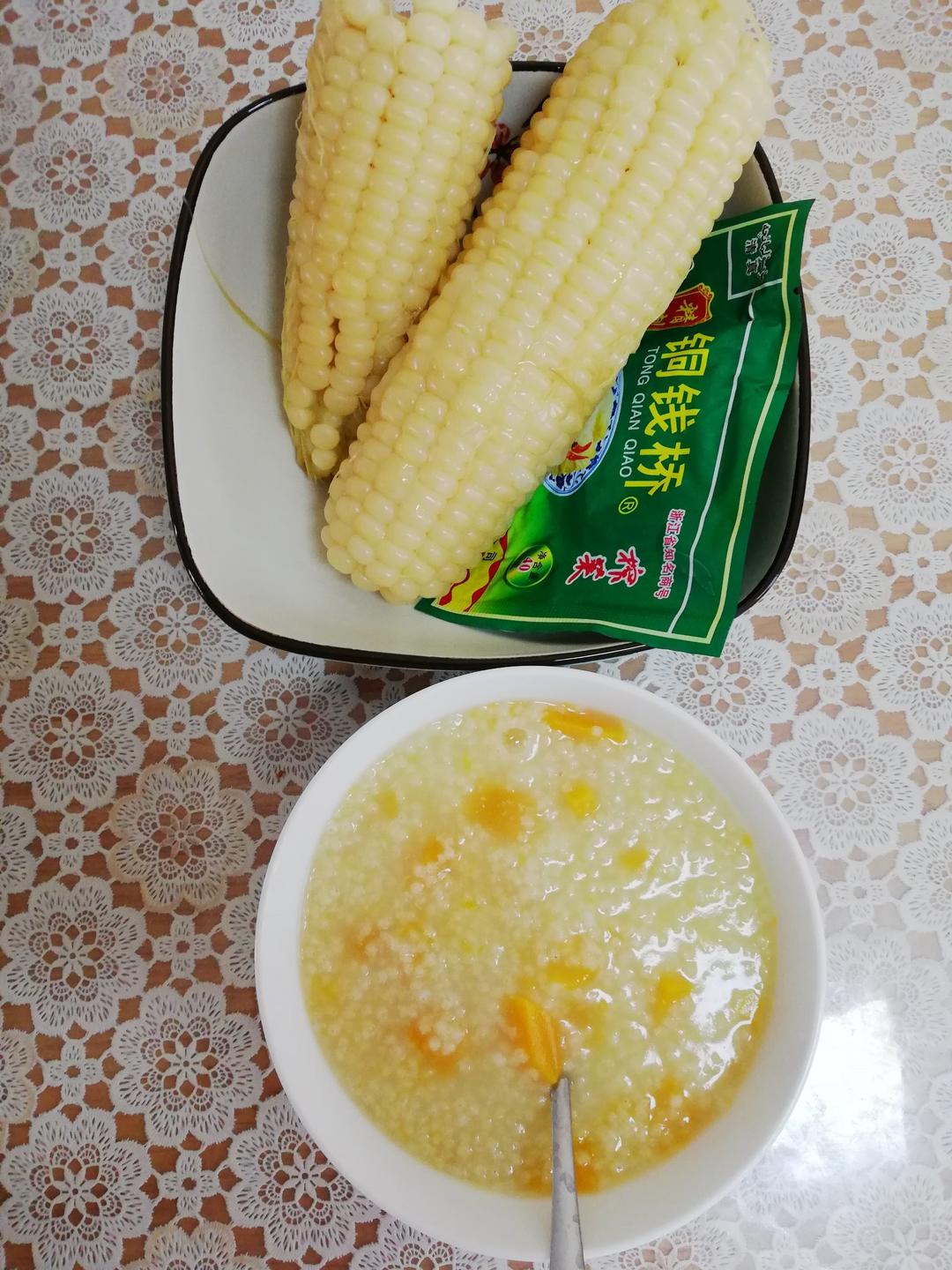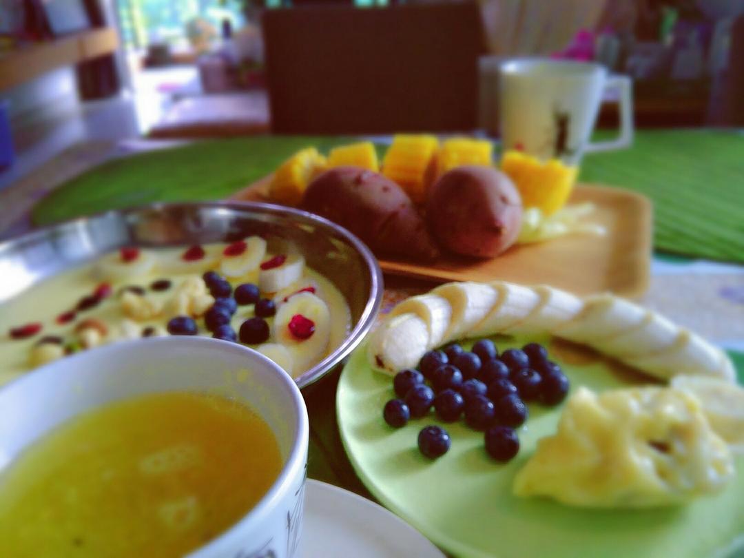 今日假期早餐——百香果蜂蜜水、玉米红薯、牛...