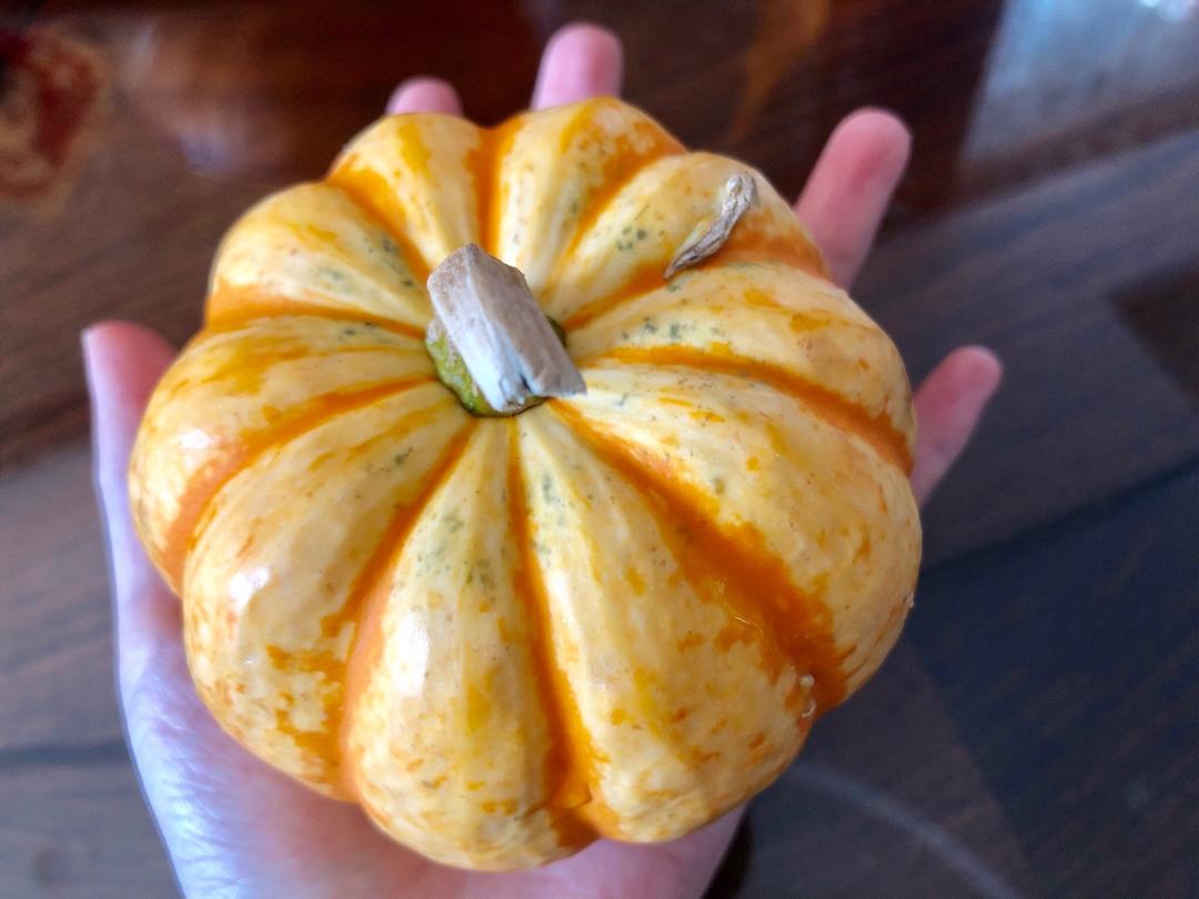 可爱的小南瓜🎃,超市里看到忍不住买了,巴掌大一点点儿,好治愈~~~看到似乎心情都好了呀🧚♀️😊