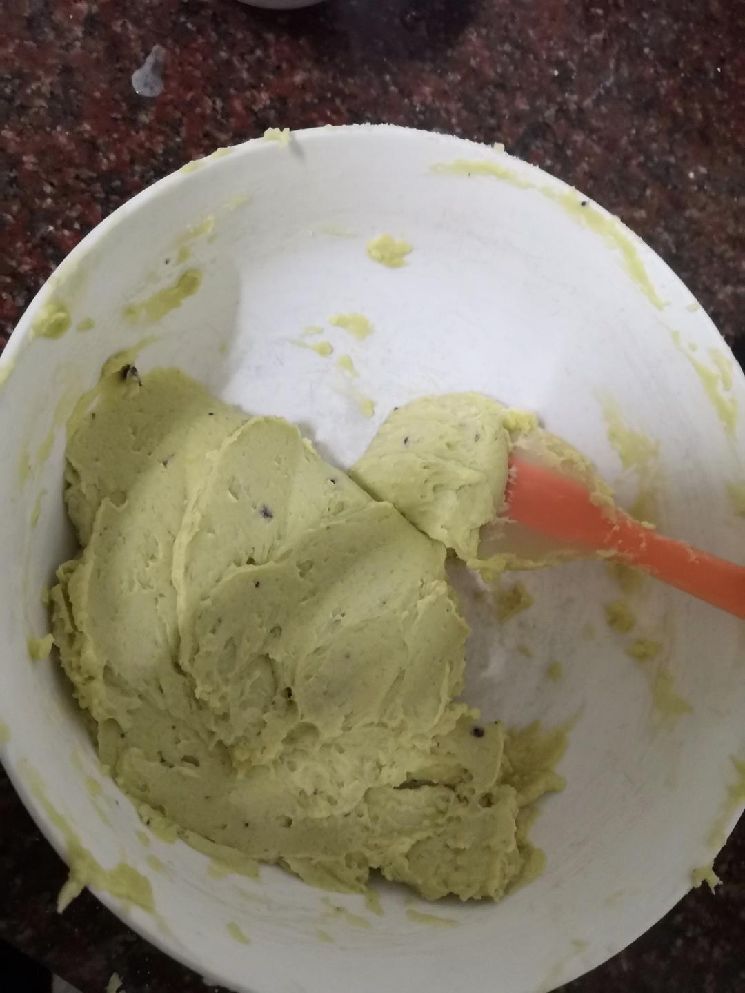 刚开始还行,状态在位,加到一半黄油时开始散,像打的鸡蛋花一样,然后析水,我把水倒了硬着头皮打,越打水越多,再尝了下,无味...
