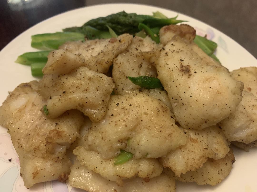 五月美食日记 DAY3:香烤巴沙鱼柳。巴沙鱼用盐、黑胡椒、柠檬汁腌一会儿,芦笋氽水后垫底,上面放腌好的...
