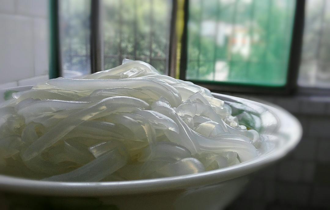 上午做的绿豆凉粉,一份儿粉,七份儿水,感觉刚刚好😁
