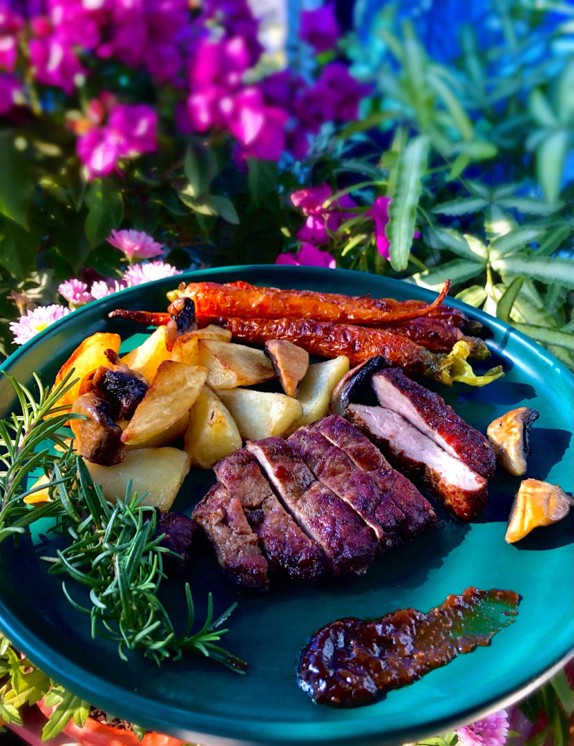 心不在焉,牛排煎老了😅