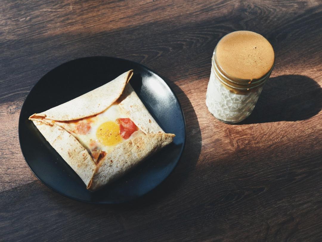 饼皮是现成的全麦面饼,炒了一个北非蛋一样的酱,这次终于包得整整齐齐的了。