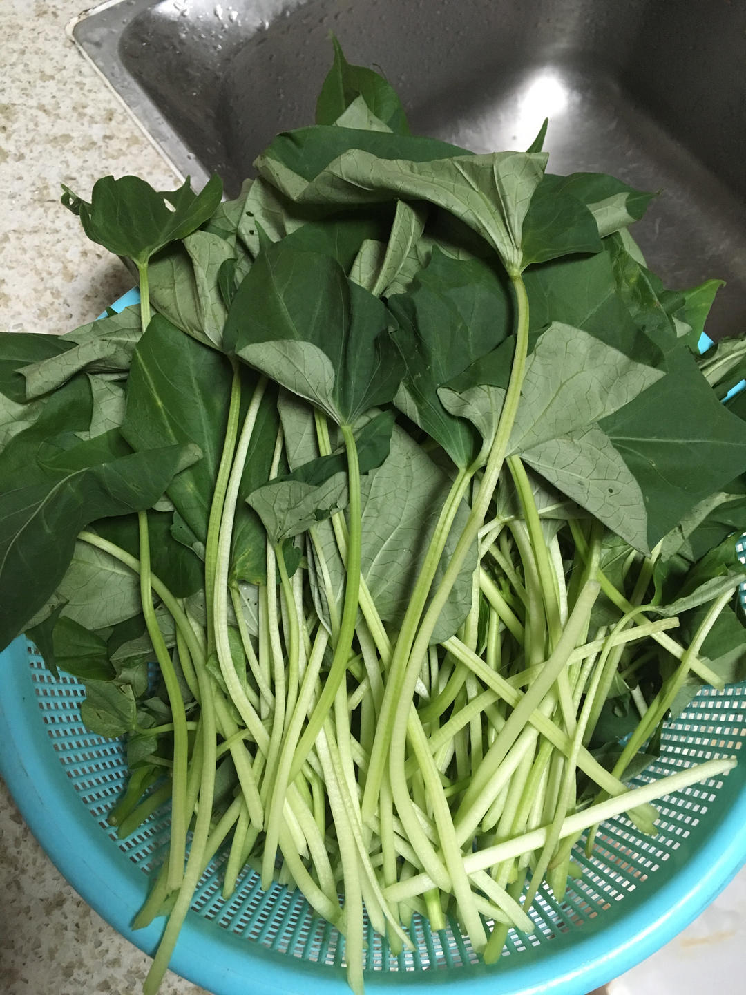刚剥了一把红薯叶留明天吃😭不容易啊,搞得一手青浆