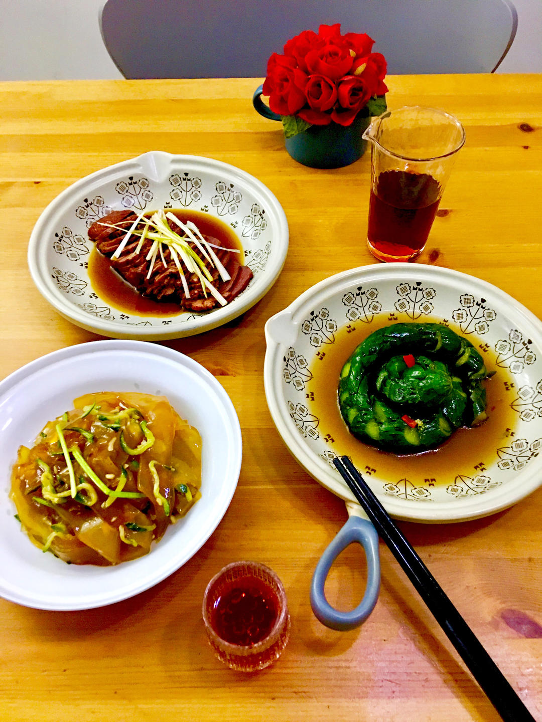 今天下班偷懒不做饭了,去菜市场买了点现成的小菜,凉拌粉皮,酸辣黄瓜,酱牛肉