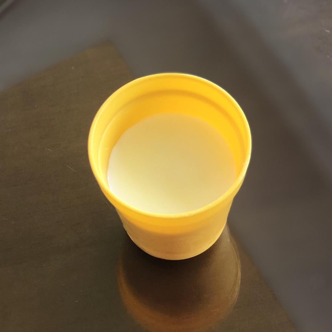 450ml牛奶加了2片吉利丁片(每片5克)