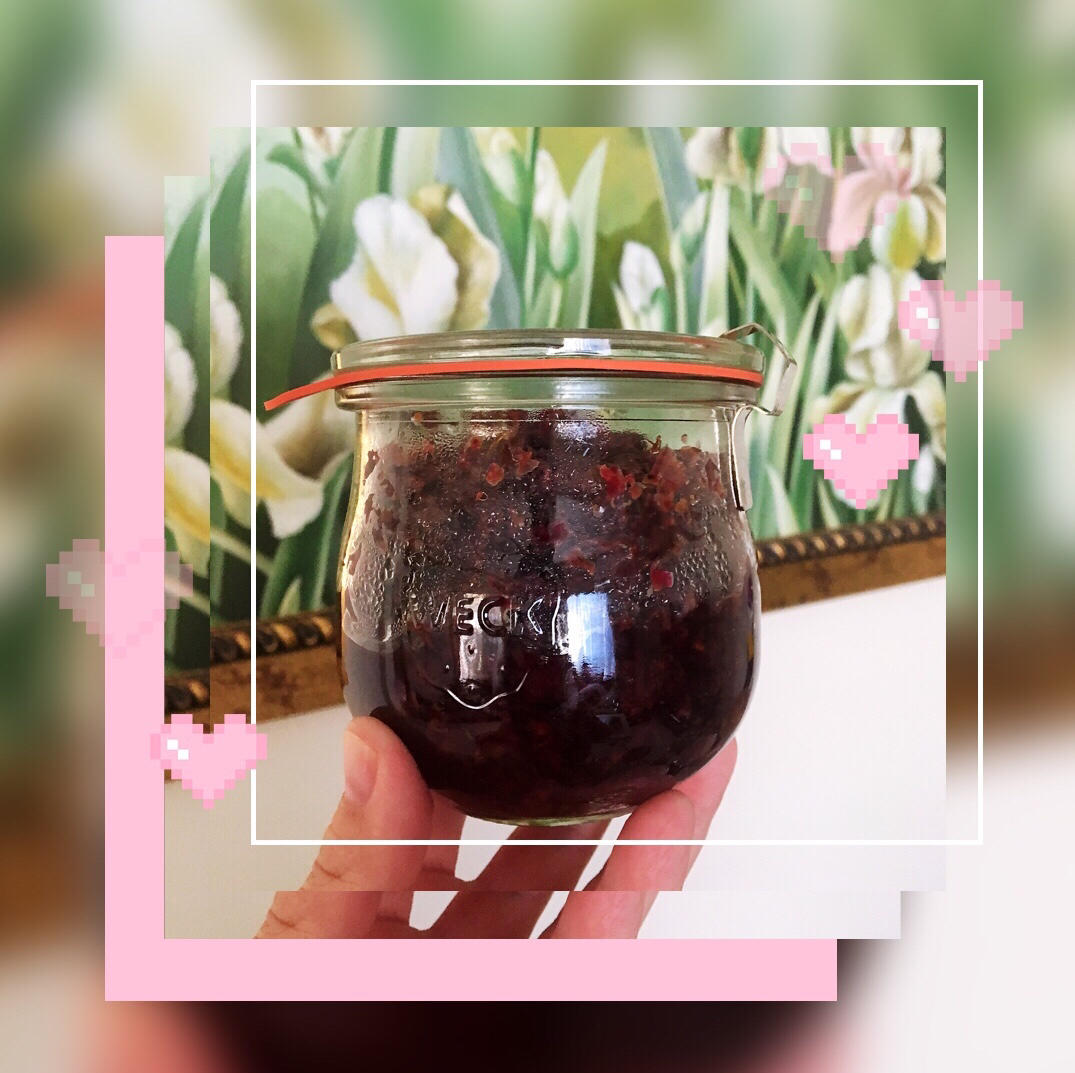 熬了满满一瓶玫瑰花酱,明天做点儿鲜花饼尝尝😊