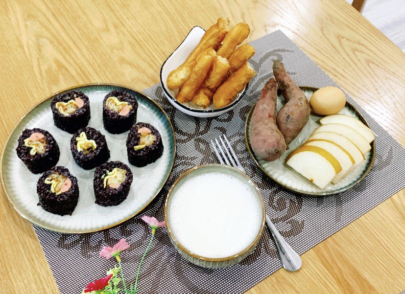 🥜豆浆+红薯...