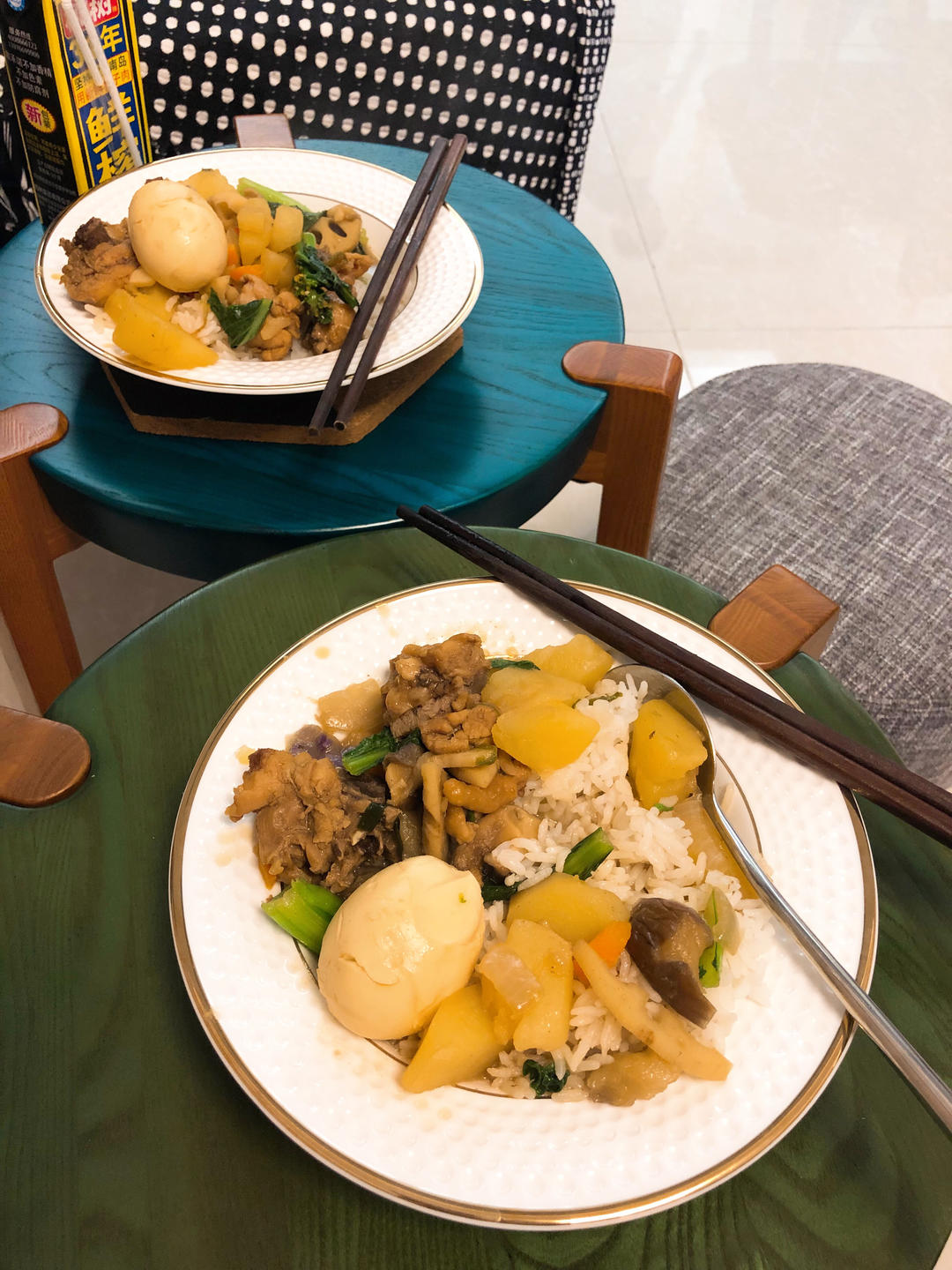 老公下厨,又见黄焖鸡米饭~换地方吃饭了,因为我在做红豆包厨房餐厅一片狼藉😂