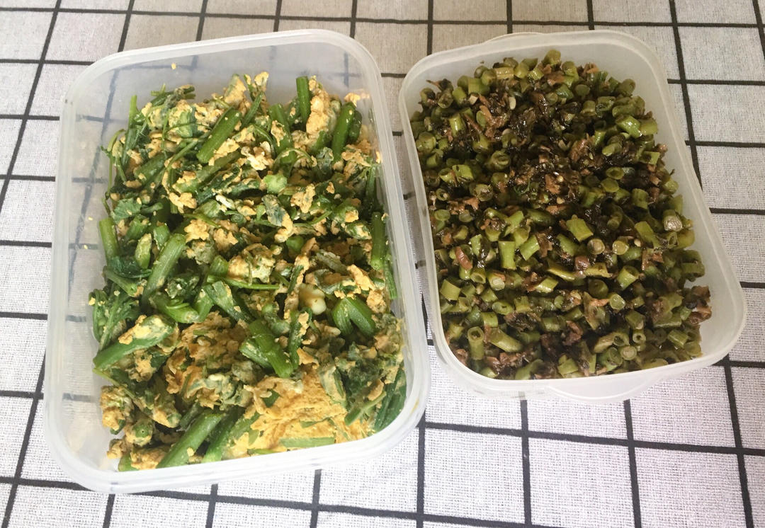 南瓜头炒鸡蛋 ➕梅干菜炒豇豆丁🤗🤗🤗