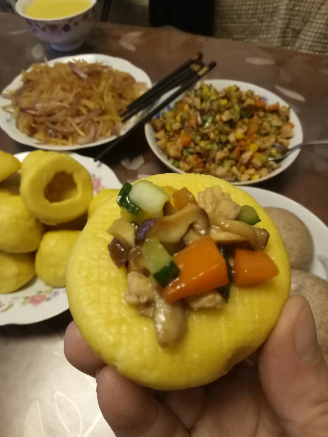玉米面窝头,全麦面馒头