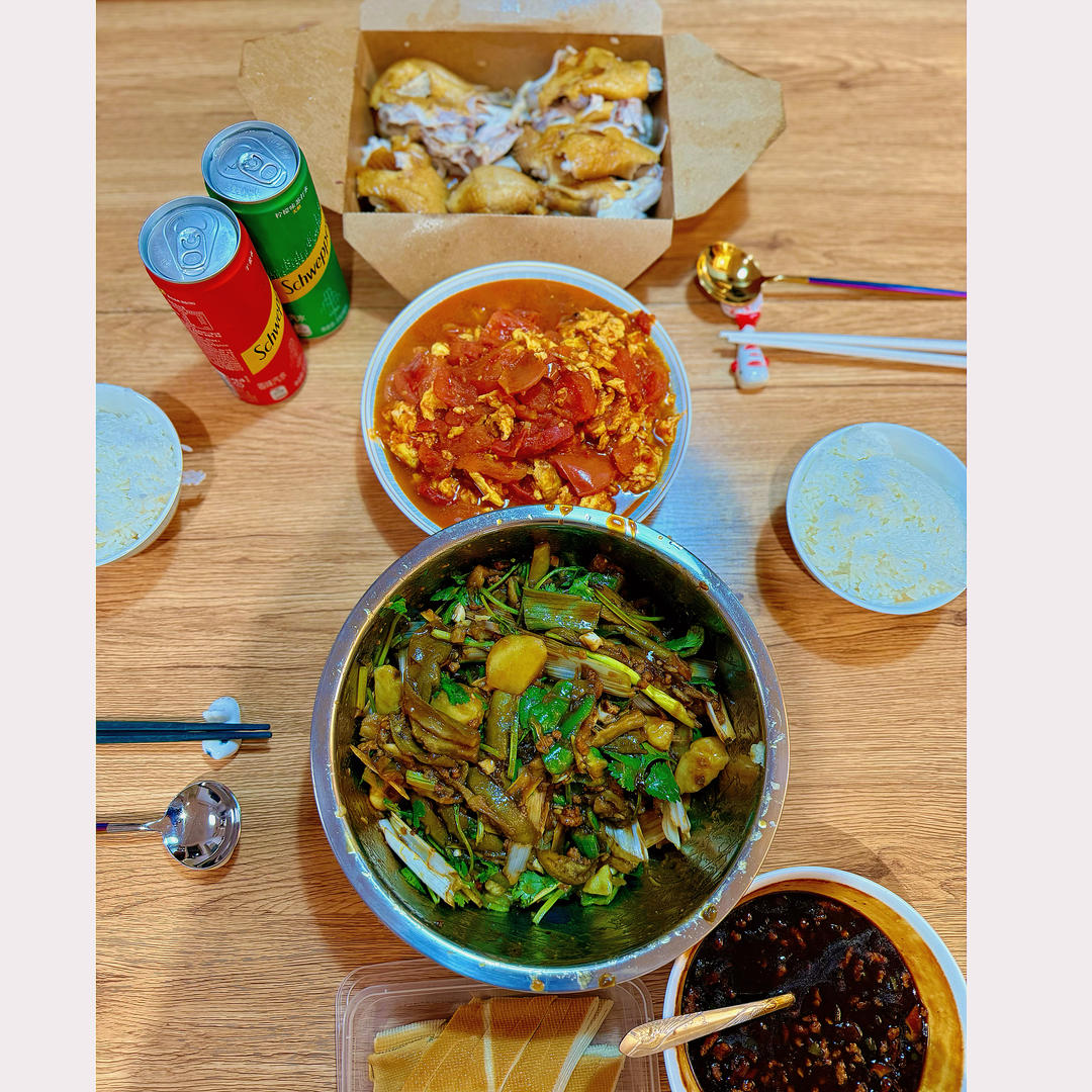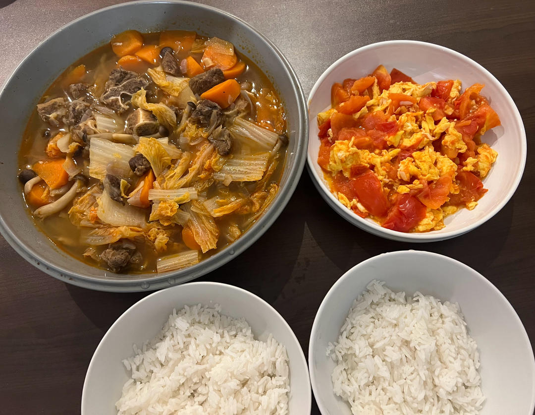 辣酱白菜顿羊肉,西红柿炒鸡蛋
