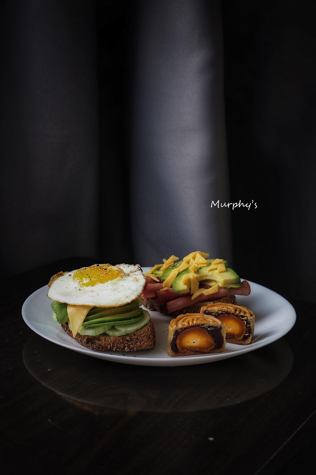 舍友和她的朋友一起做的月饼还有自己瞎做的开放式三明治
