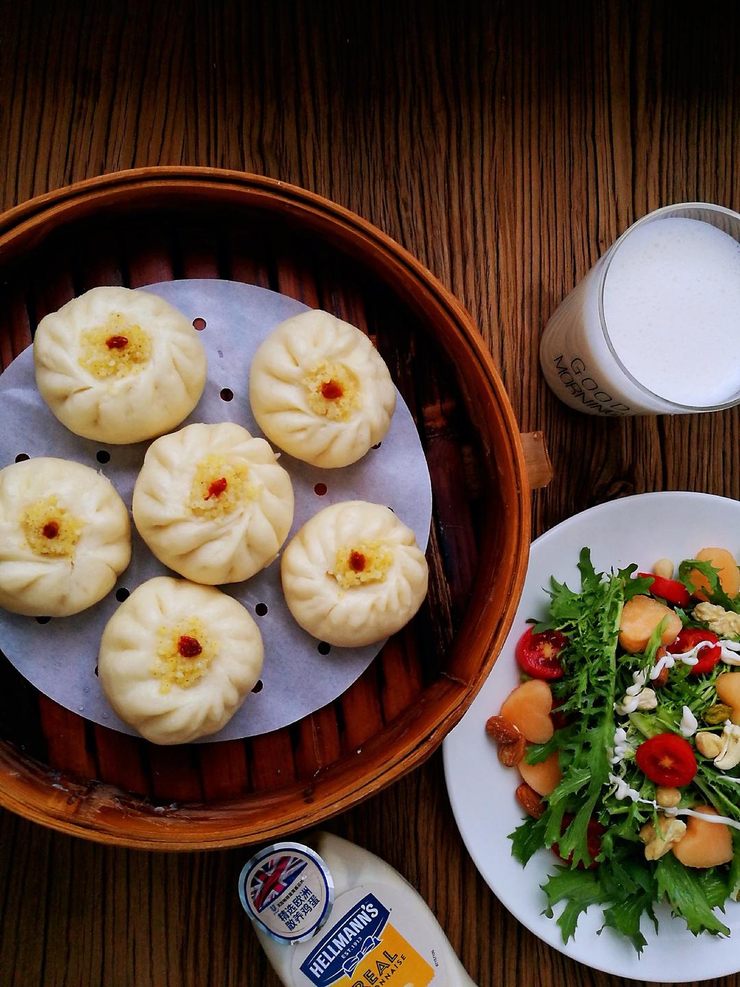今儿过节,大家中秋节快乐呀!大清早蒸了大黄米包,拌了一盘草[捂脸],一杯牛奶。[玫瑰][玫瑰][玫瑰]