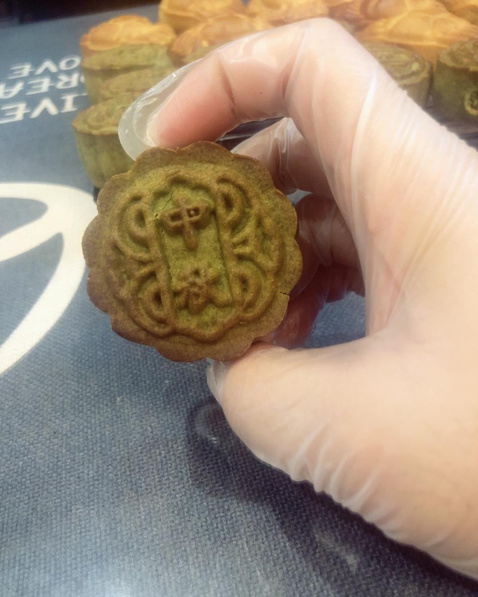 用的抹茶牛奶红豆馅,50g月饼,皮20g馅30g皮略薄,63g月饼,皮30g馅33g好刚刚