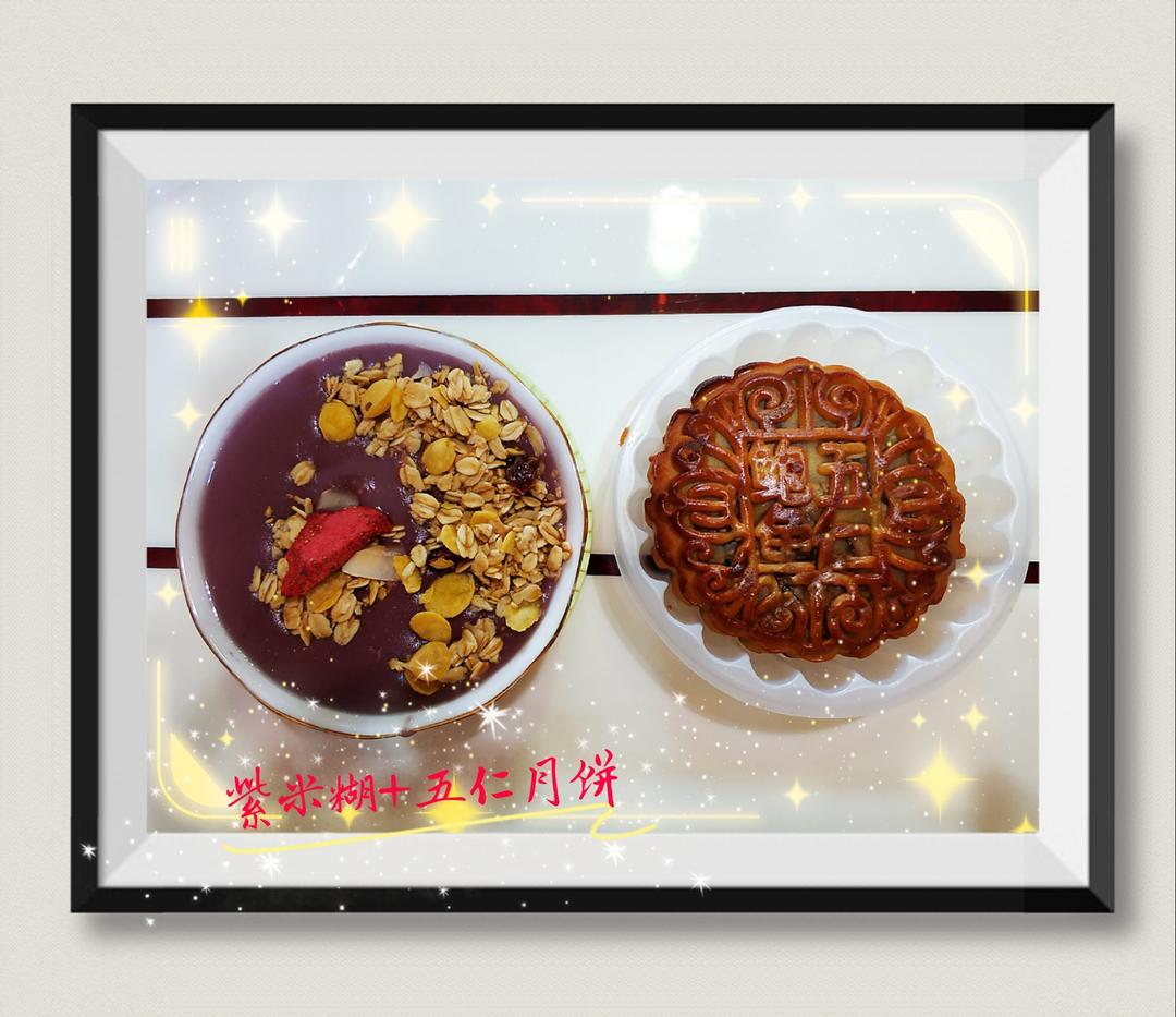 紫薯米糊云集换的麦片,加块大侄女送的月饼,开启早餐。