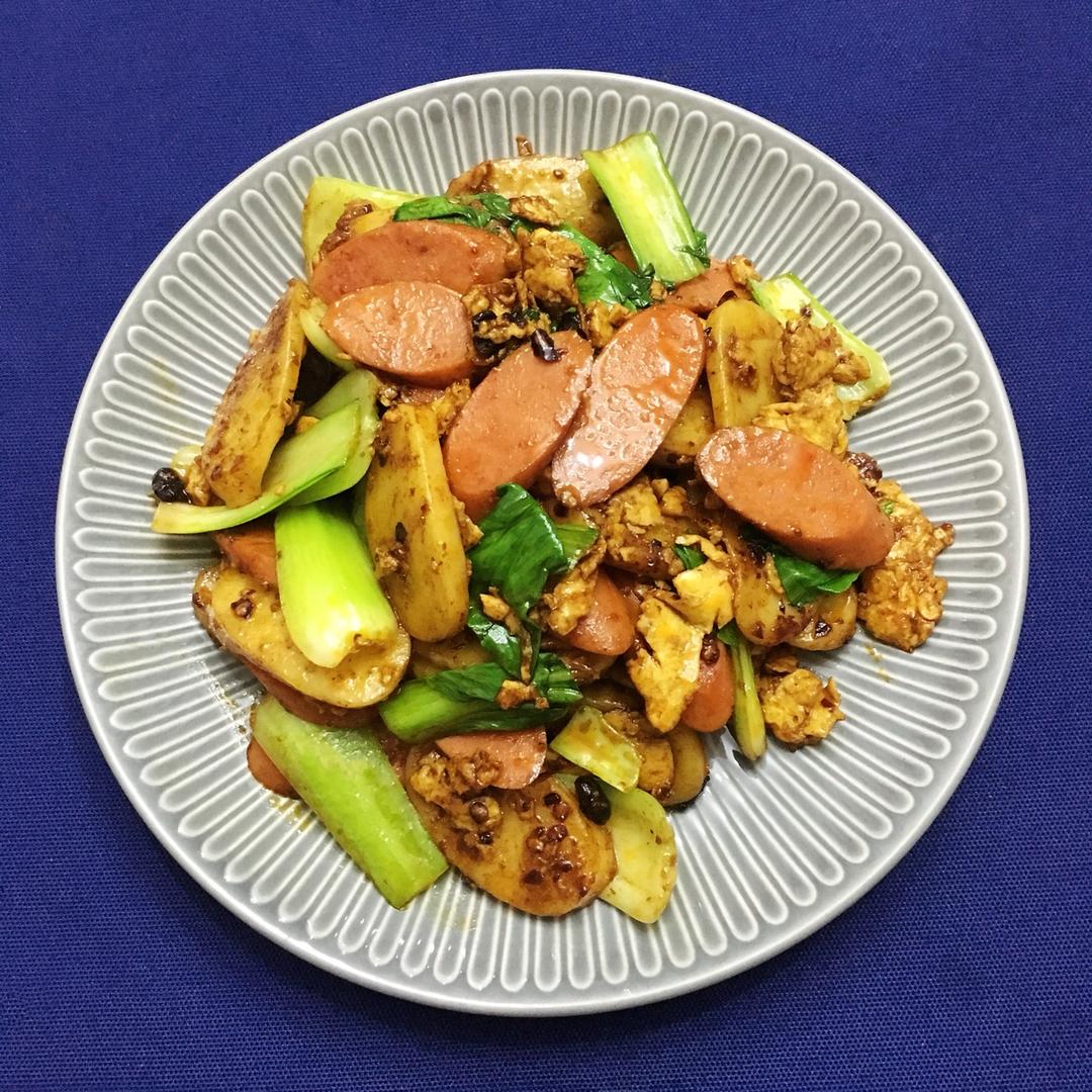 超市买的腊肠不太好 炒完成沫了(也可能是我炒久了 谁知道呢)