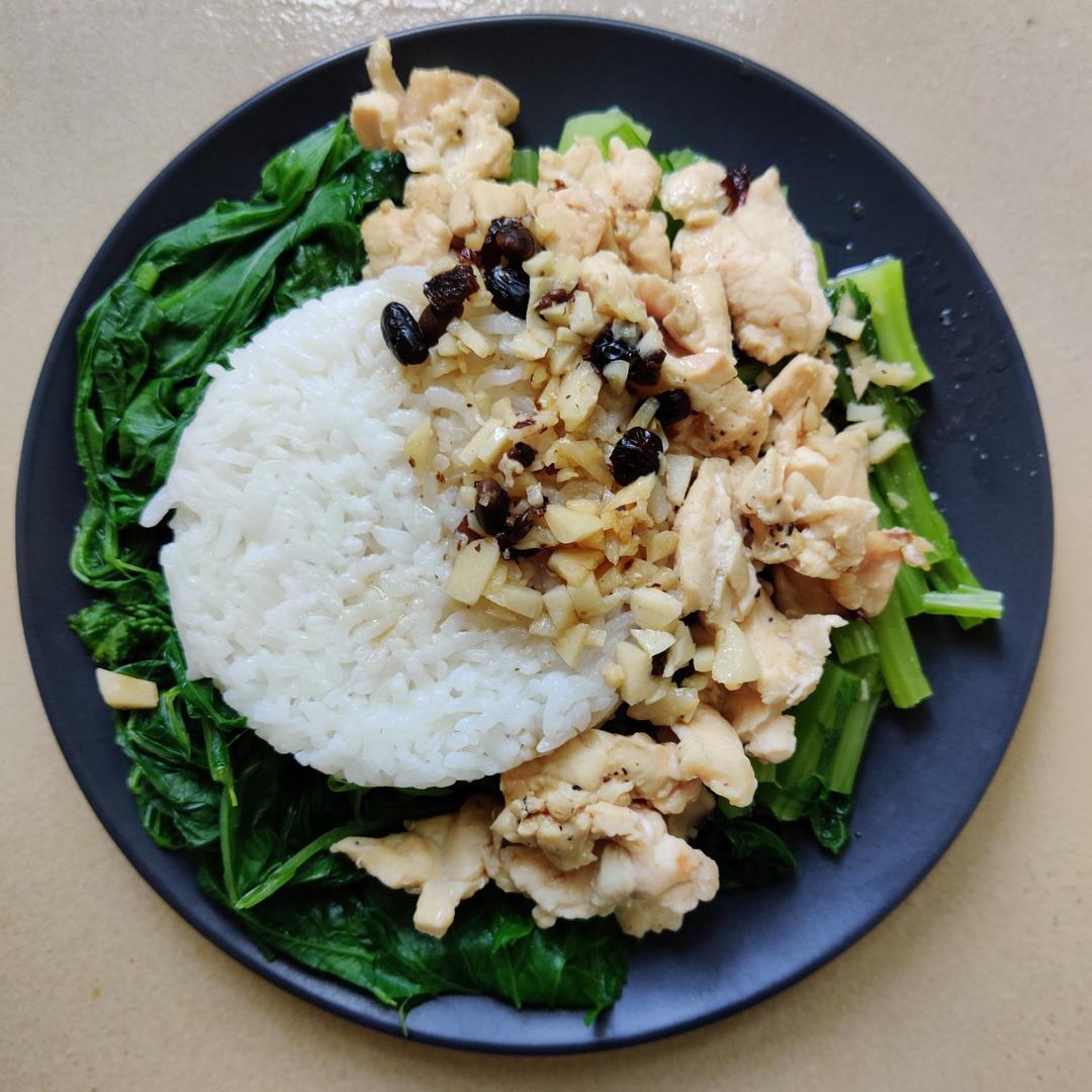 蒜蓉蒸鸡胸配汆春菜