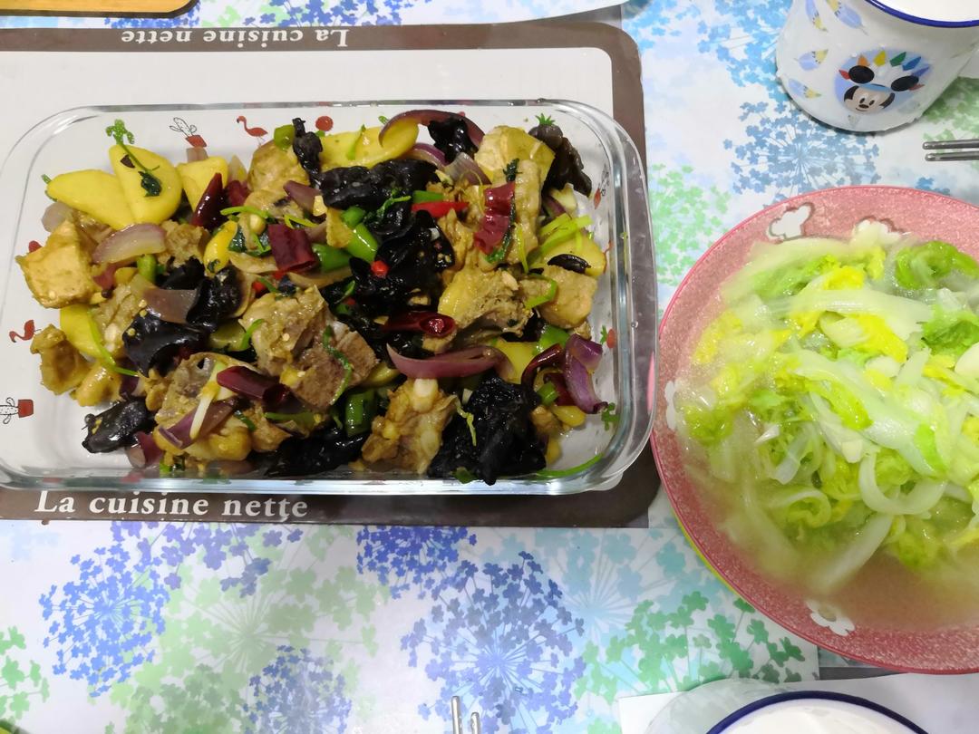 干锅排骨鸡 上汤小白菜