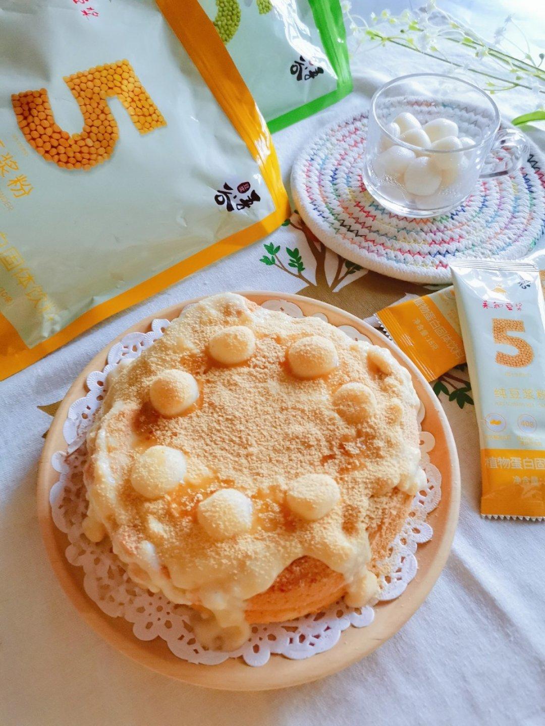 🥞豆乳雪顶戚风蛋糕,加了手搓的糯米团子,撒了黄豆粉,香浓的低卡豆乳酱真的太和我口味啦,熬好后忍不住偷吃😜
