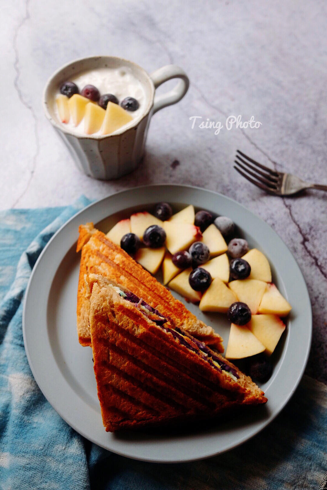 早餐:鸡蛋肉松三明治 酸奶杯