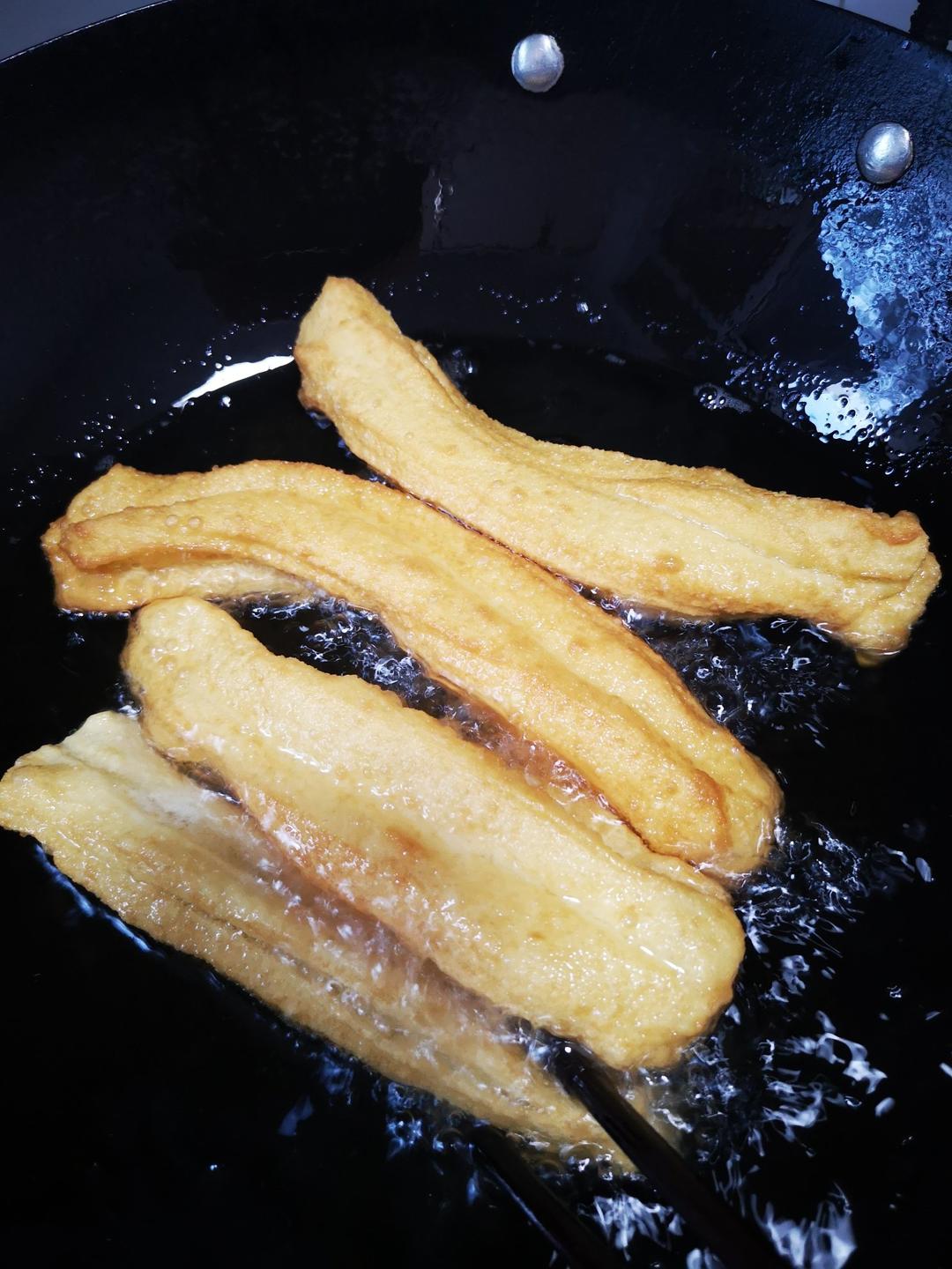 成品软硬适中,不是卖的那种外面酥脆、里面暄软的大油条,但也不硬,不是之前自己做的那种咬不动的老家伙。应该说,这就是油条应...