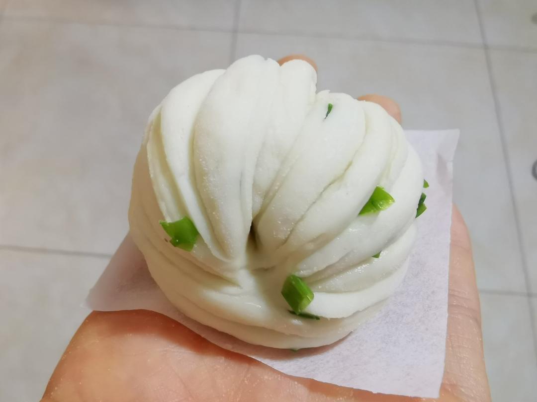 葱洗净晾干(不能有水),放一丢丢小苏打)一定要拌匀。