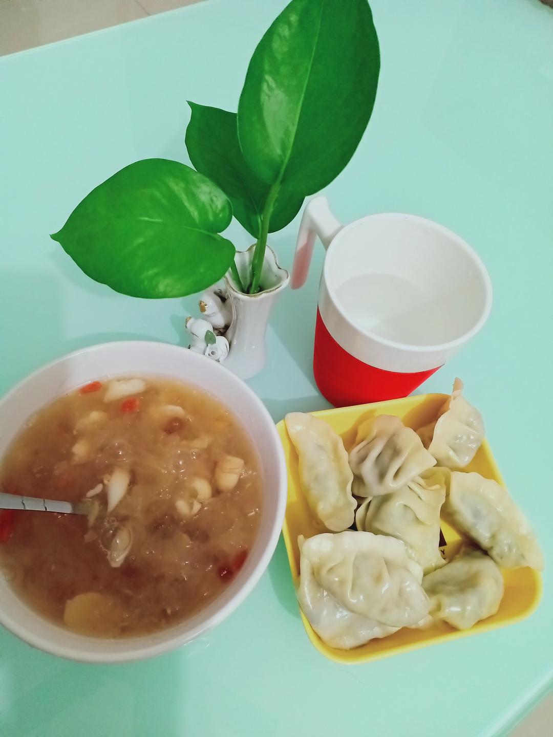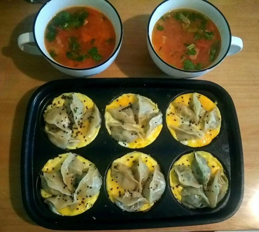 抱蛋煎饺、番茄汤。