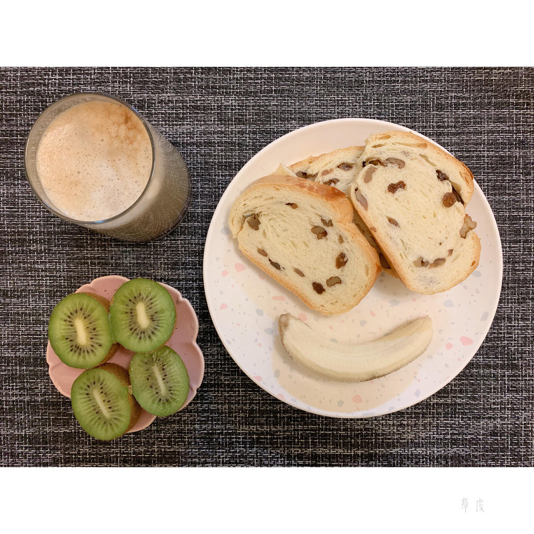 早安:大列巴+香蕉+猕猴桃+无糖脱脂拿铁