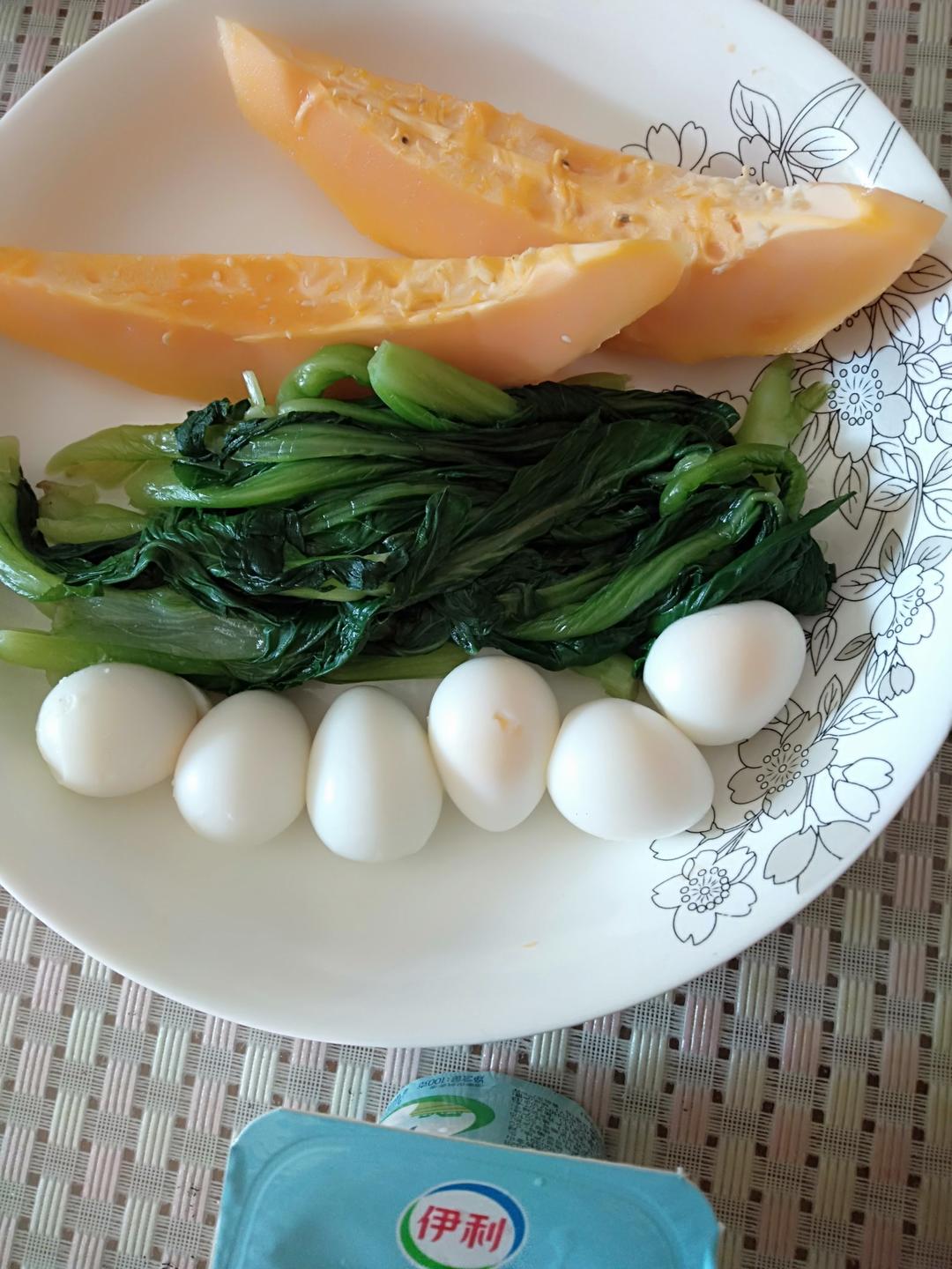 减肥早餐,木瓜、酸奶、油菜、鹌鹑蛋