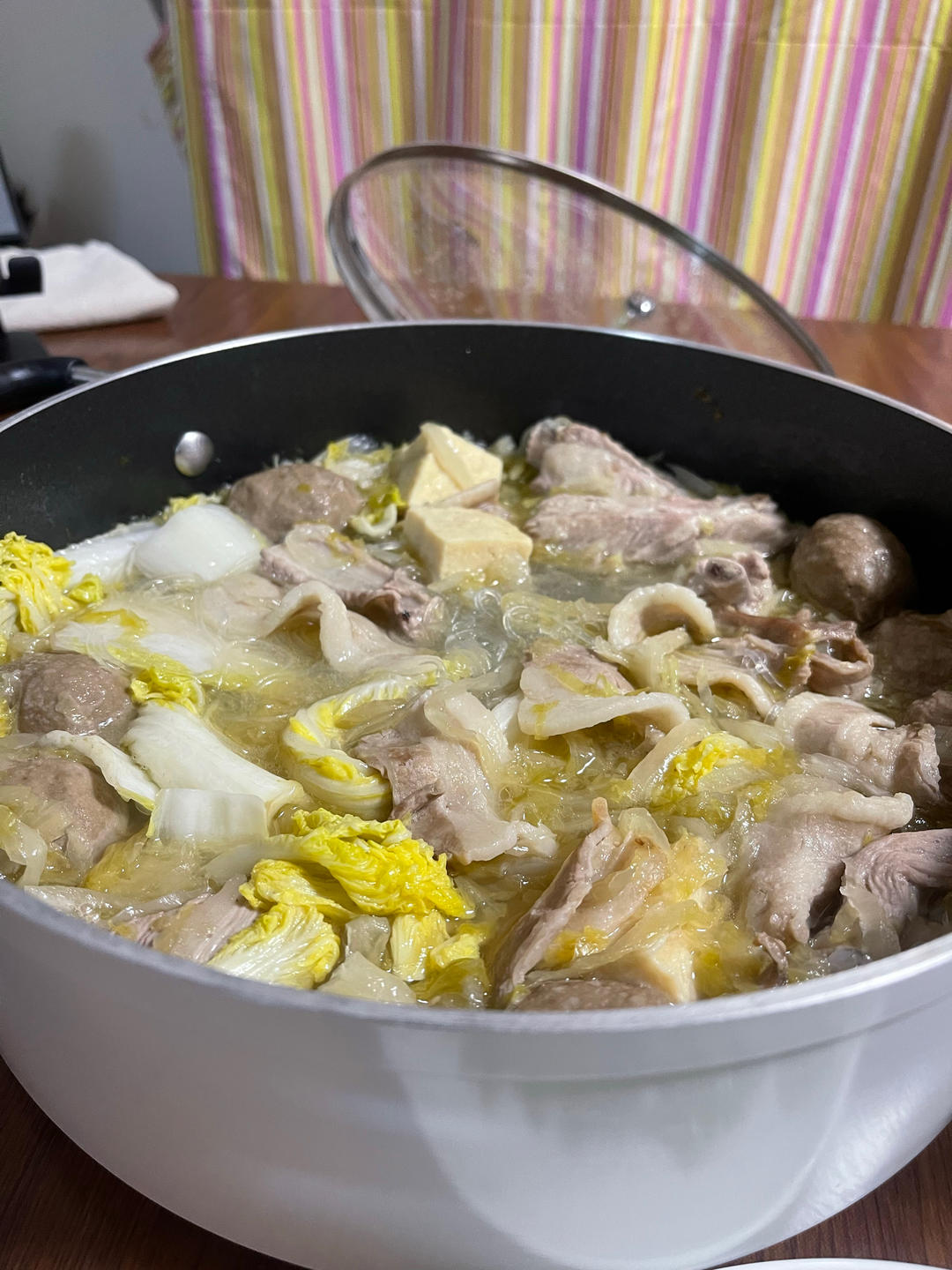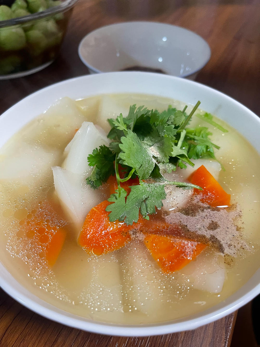 炖羊排白萝卜汤,汤里放香菜和白胡椒很关键~香菇油菜,肉炒辣椒