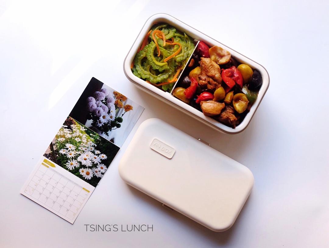 午餐便当:清炒苦瓜 板栗烧鸡